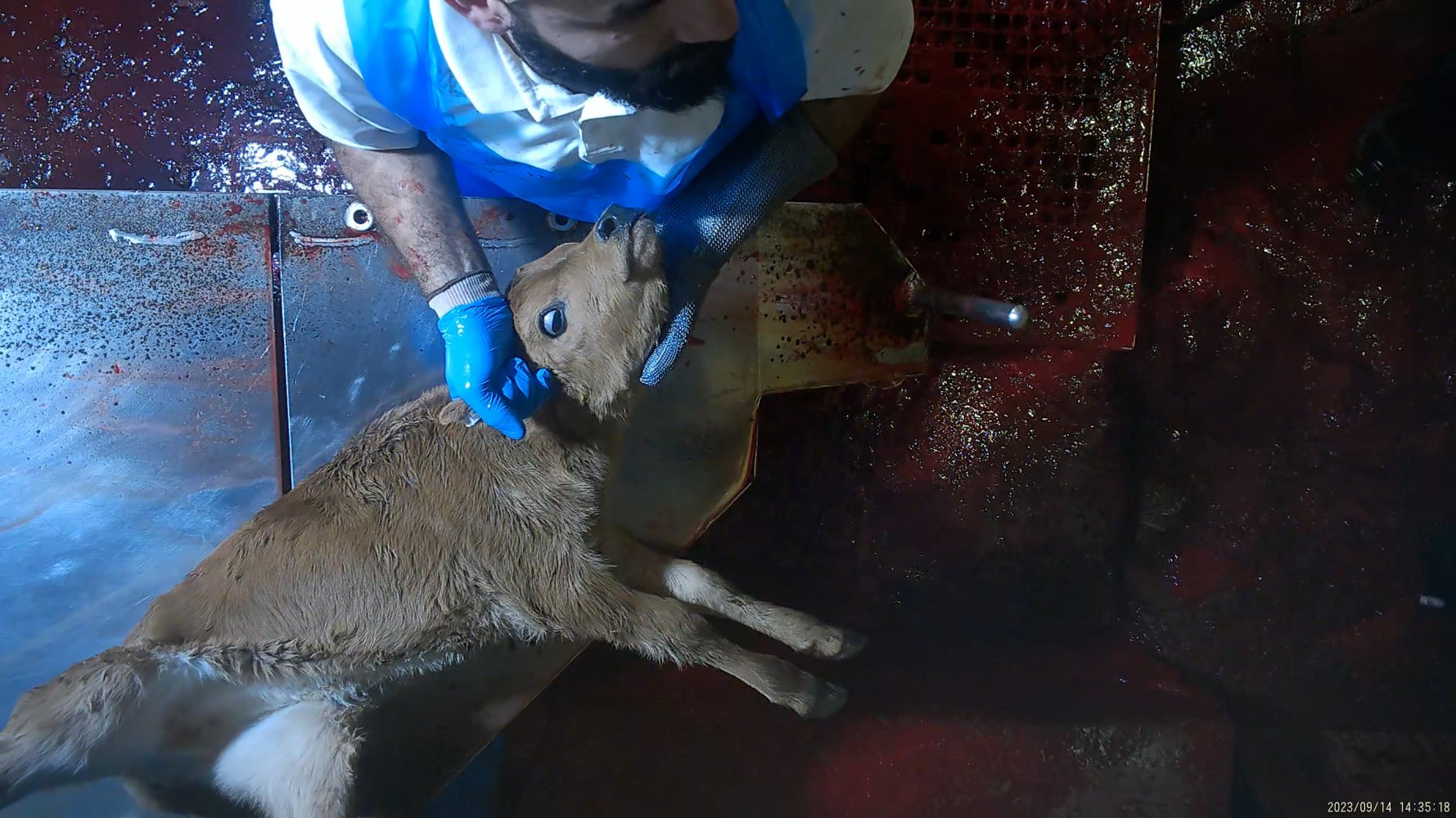 The merciless slaughter of week-old calves, including dozens who have their throats slit while fully conscious.