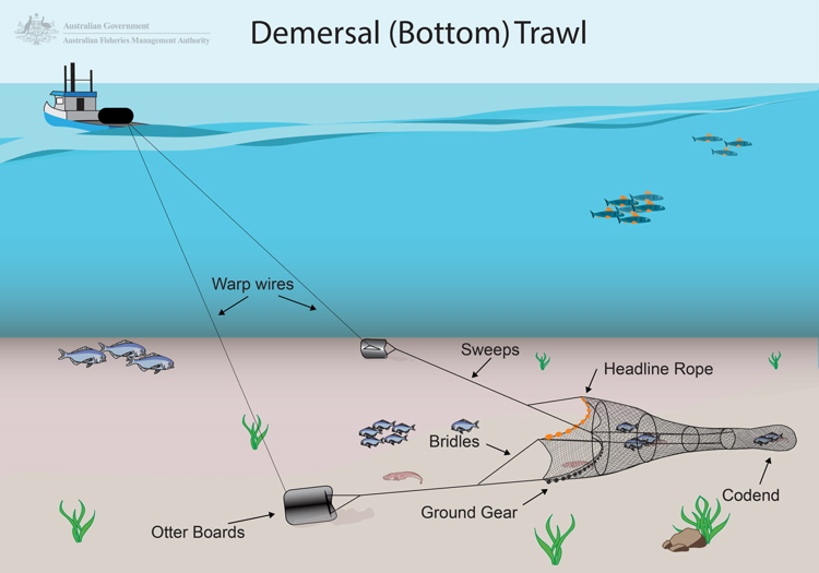 Graphic by Australian Fisheries Management Authority (AFMA) depicting bottom (demersal) trawler