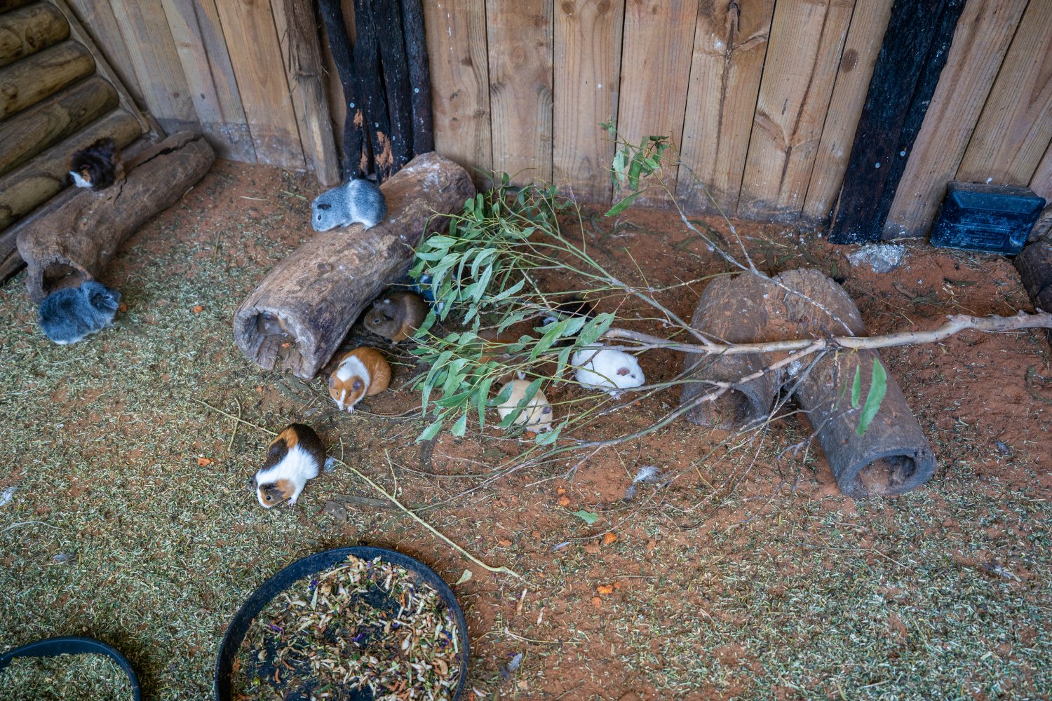 The guinea pigs similarly demonstrate deficiencies in diet, hygiene, and enclosure design. The muesli style feed promotes selective feeding and imbalanced nutrition and is inconsistent with their requirement for a high fibre, hay-based diet. Critically, high quality hay, which should form the primary component of the diet, is absent, increasing the risk of dental disease, gastrointestinal dysfunction, and obesity.