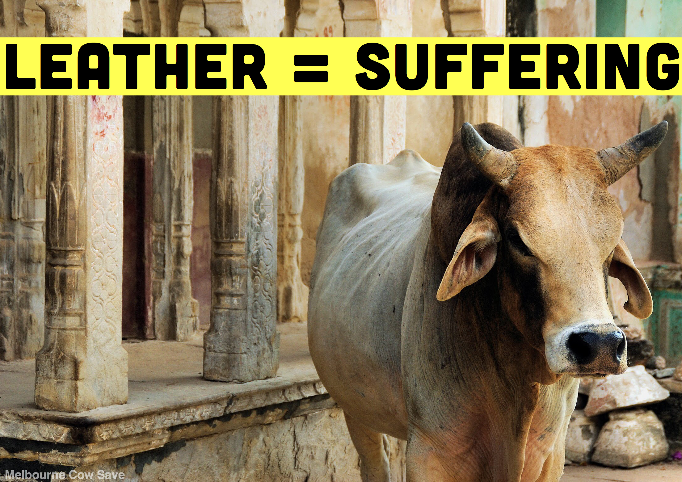 Leather = Suffering. A3 size poster for activism events