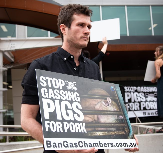 Advocacy group Farm Transparency Project (FTP) organised the protest after receiving footage showing shocking, filthy and cruel conditions at twenty Victorian piggeries, filmed covertly by dozens of activists over the weekend.