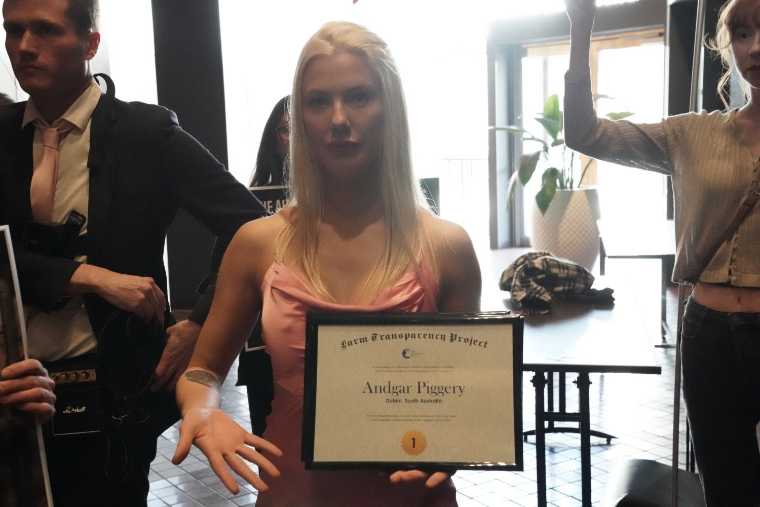 - The protestors presented awards for 'Outstanding Cruelty to Pigs', highlighting cruelty exposed in Australian pig farms over the past two years.