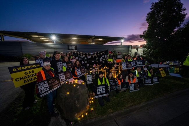Campaigners from Animal Liberation Tasmania and Farm Transparency Project are planning on disrupting animal transport trucks at Tasmanian Quality Meats slaughterhouse, in a protest against “systemic animal cruelty in Tasmanian slaughterhouses.”